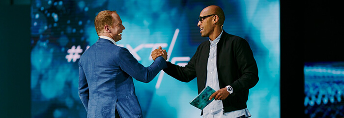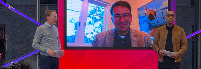 Die Bertelsmann-interne „Tech and Data Week“ stand zuletzt unter dem Motto The New Together. Das internationale Hybrid-Event 2021 setzte sich aus Vorträgen, Podiumsdiskussionen und internationalen Guest-Speakern zusammen. AMIAZ moderierte beispielsweise Vorträge mit Finanzvorstand von Bertelsmann (CFO) Rolf Hellermann und Microsofts CEO Judson Althoff. / Moderationssprache: englisch