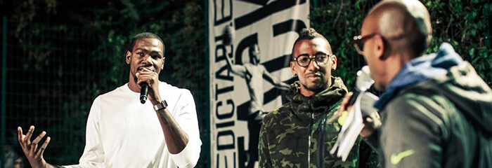 Für Nike moderierte AMIAZ in Berlin das Aufeinandertreffen zweier Sportgrößen Ihrer Disziplin. Jerome Boateng vom FC Bayern München und Kevin Durant, Basketballstar aus der NBA. Neben den Talks auf englisch und deutsch heizte der Moderator beim Spiel der zwei Giganten das Publikum ein.